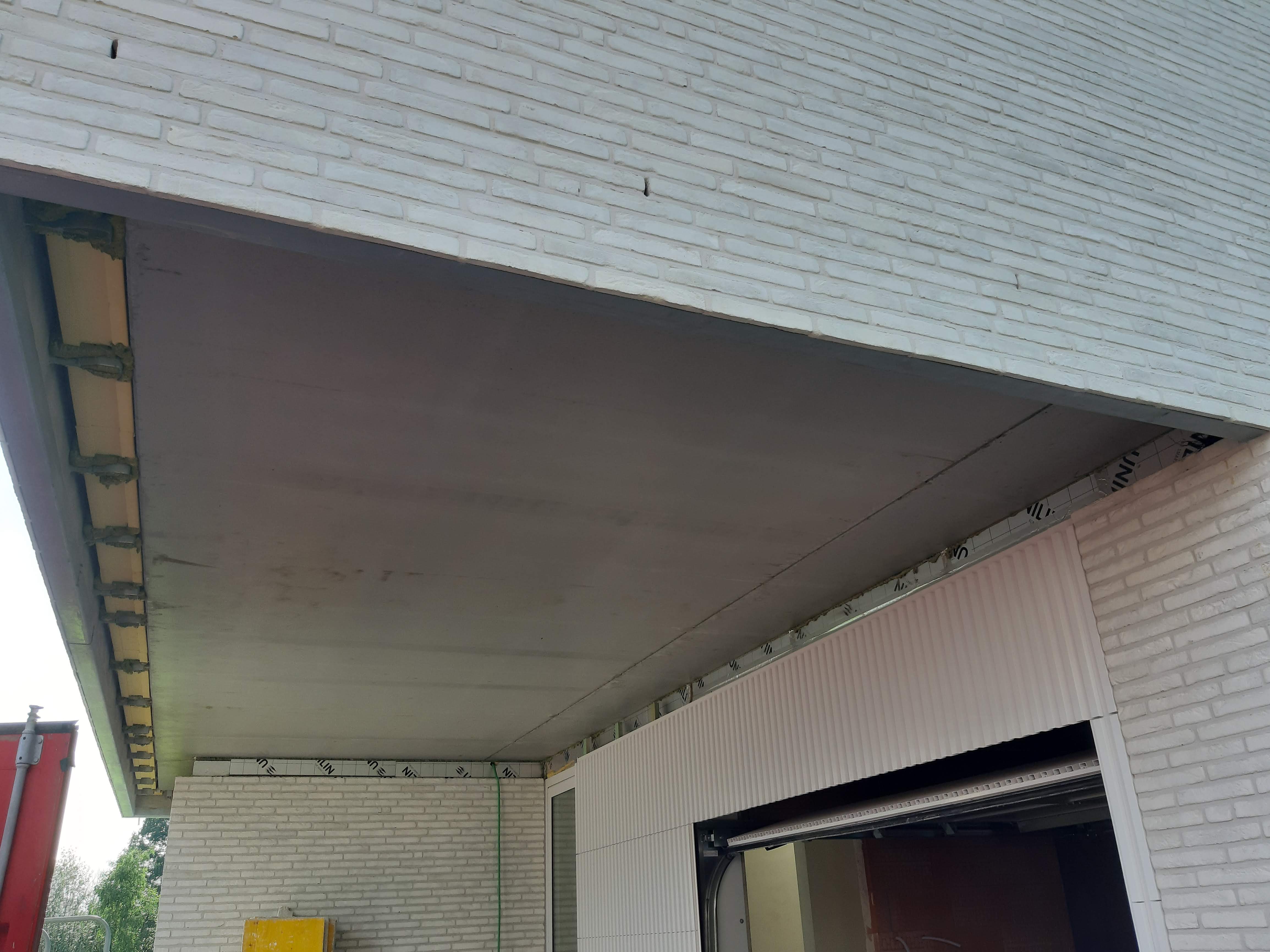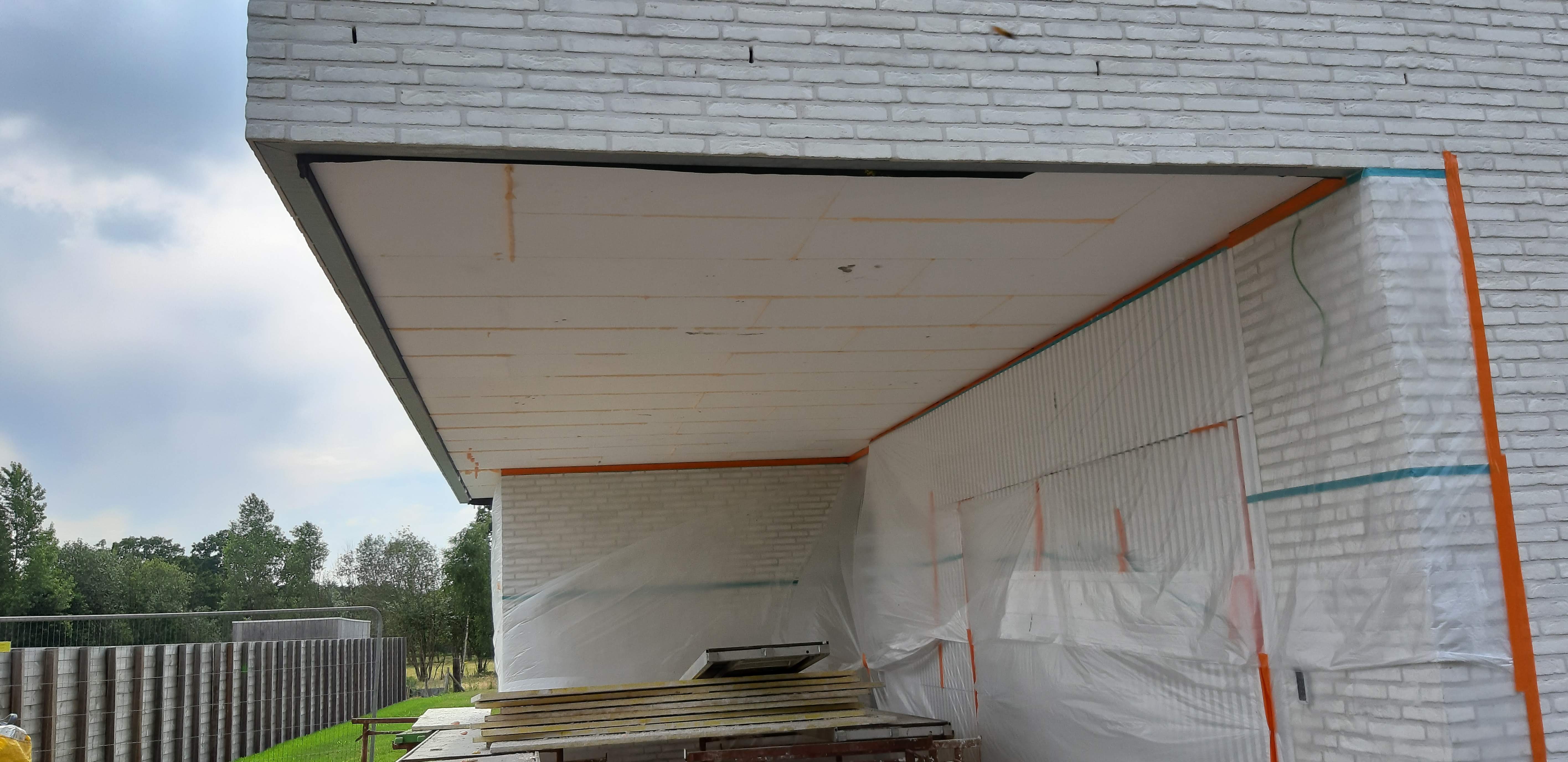 Plafond isoleren met 16cm Eps isolatie. Armath wapeningslaag. Afgewerkt met Stolit 1.0 Korrelpleister.